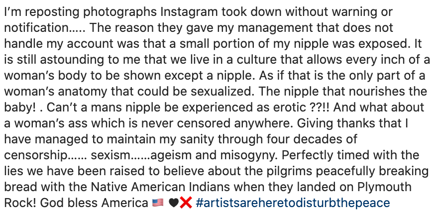 This nasty old lady. Don't nobody wanna hear about her nipples .yuck