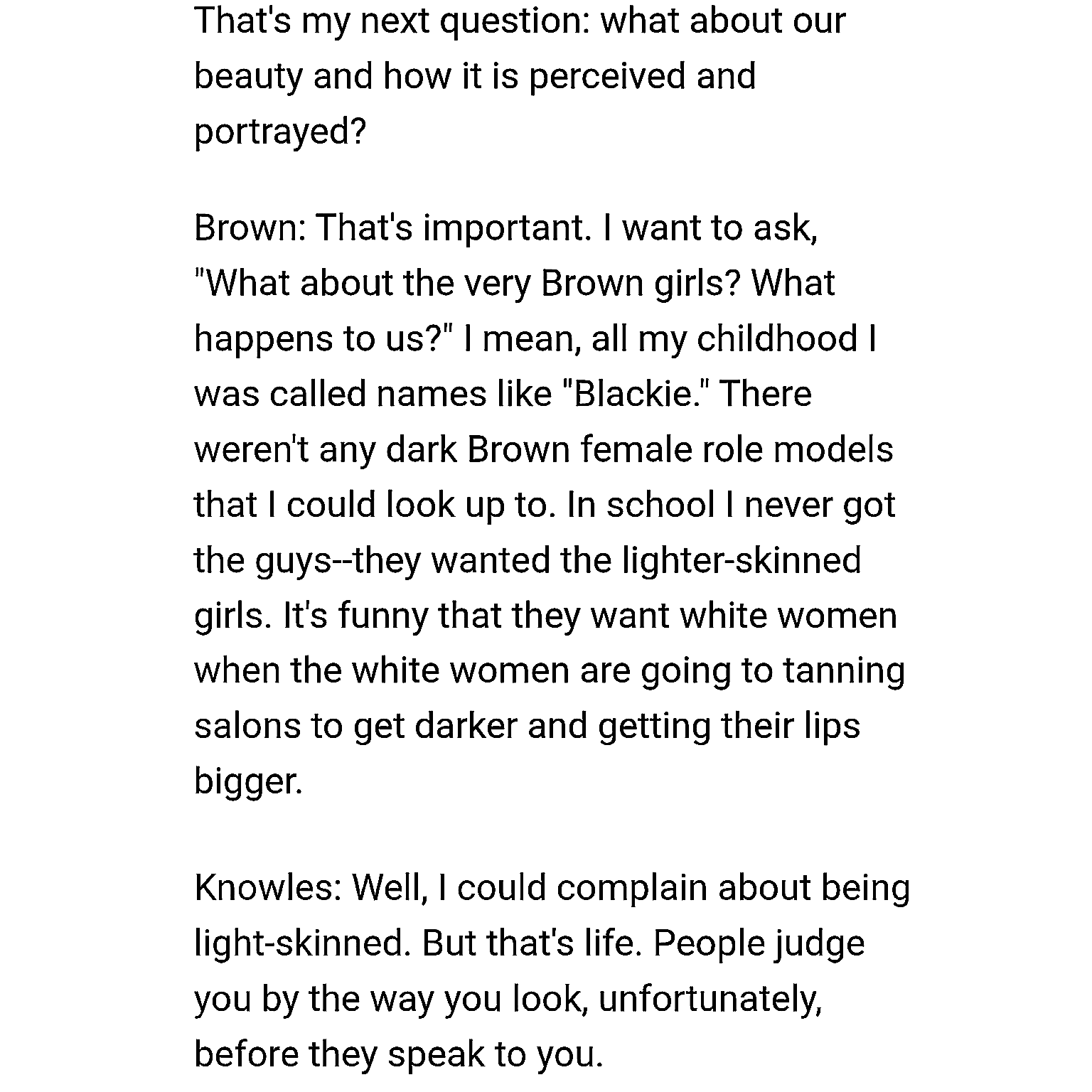 "You ain't really light skin! You brown! You think u special cuz u creole ? Bitch u just Black!