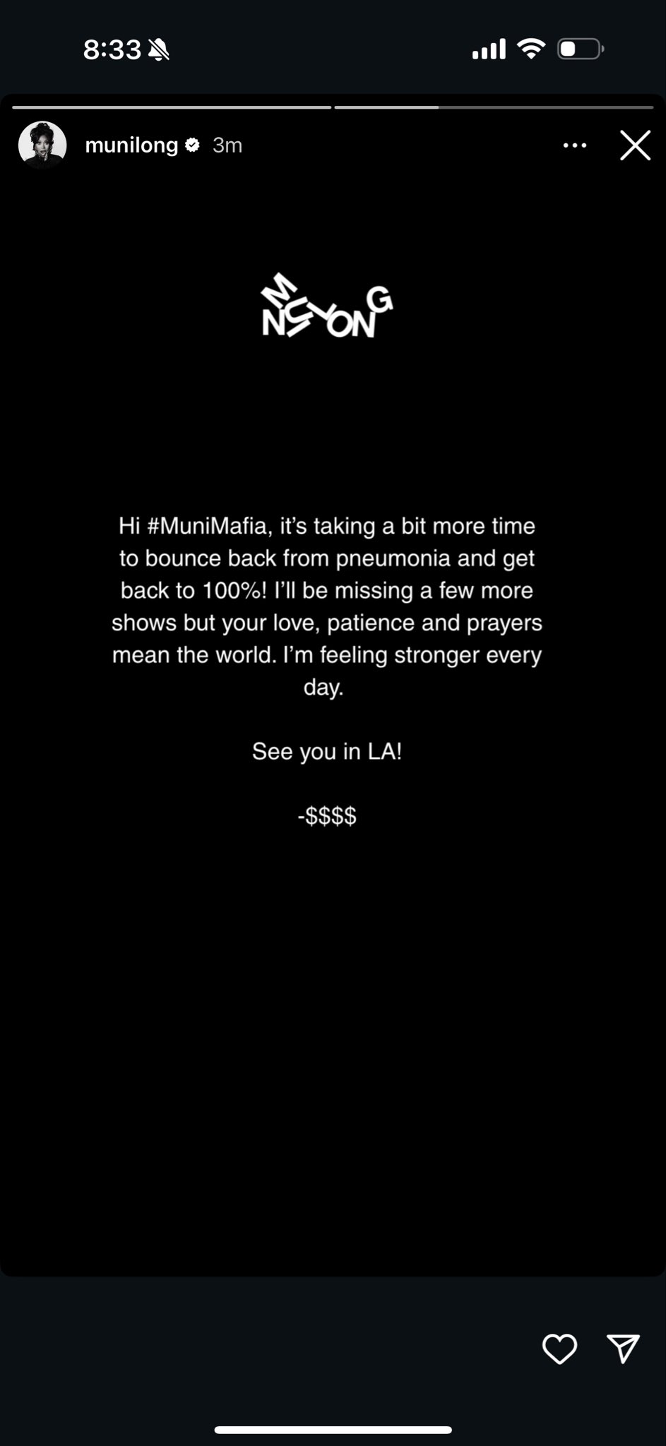 Quote from: ❄️☃️🌨� Shuji Feels Different 🌨�☃️❄️ on October 30, 2025, 08:19:29 AMI would love to see Mya in Charlotte. Not a Muni fan. Come on pneumonia. Hang on a little longer...