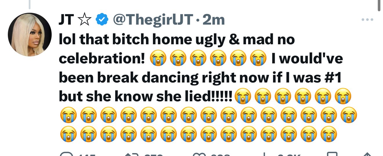 Quote from: L0NZ. on September 29, 2025, 11:20:33 PMQuote from: Barbie Dangerous on September 29, 2025, 11:19:19 PMShe really FUMING. Finally something she wrote herself and the shit doesn't even rhyme. it does rhyme